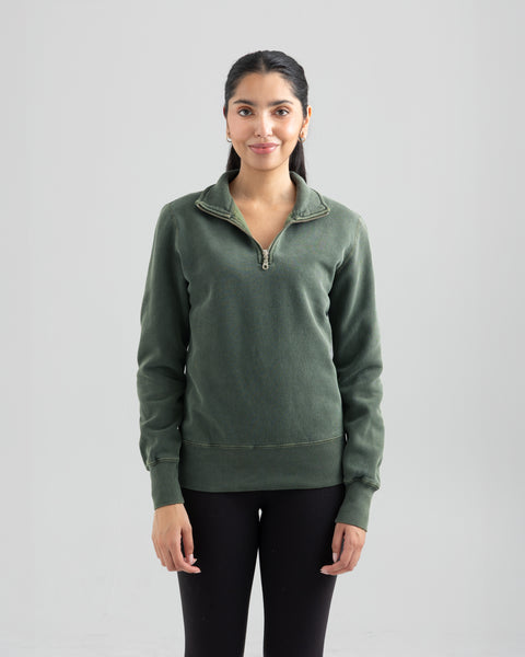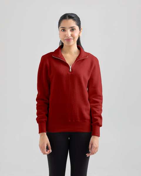 Gender Neutral 16oz Slim Fit Zip Mock Polo Sweatshirt