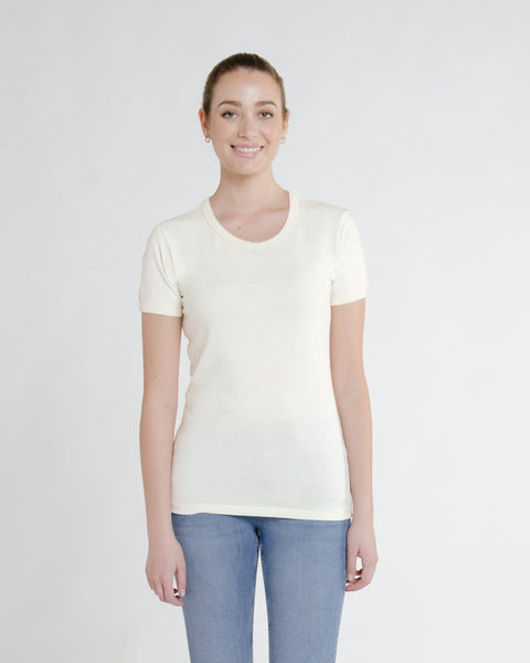 Meet the Iris Tee, your new favourite classic ringer with a feminine edge! This tee is perfect for a sleek look with a snug fit that hits just below the waist. If you prefer a more relaxed vibe, just size up! Featuring a ribbed knit crewneck and cuffs for short sleeves, it’s tailored for a timeless fit. Made in Canada with super soft and smooth 9oz jersey cotton, our unique multi-panel construction ensures it’s a t-shirt you can rely on for years. Perfect for everyday wear.